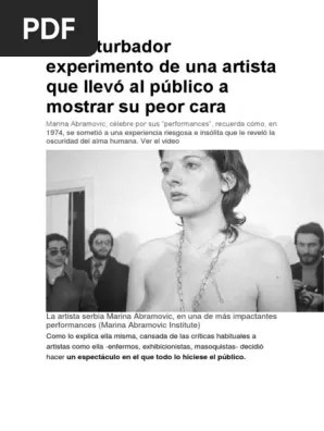 12.05.2021 · con esta exposición y este texto, marina abramović realizó la que quizá sea su performance más explosiva y perturbadora. . 12.05.2021 · con esta exposición y este texto, marina abramović realizó la que quizá sea su performance más explosiva y perturbadora.