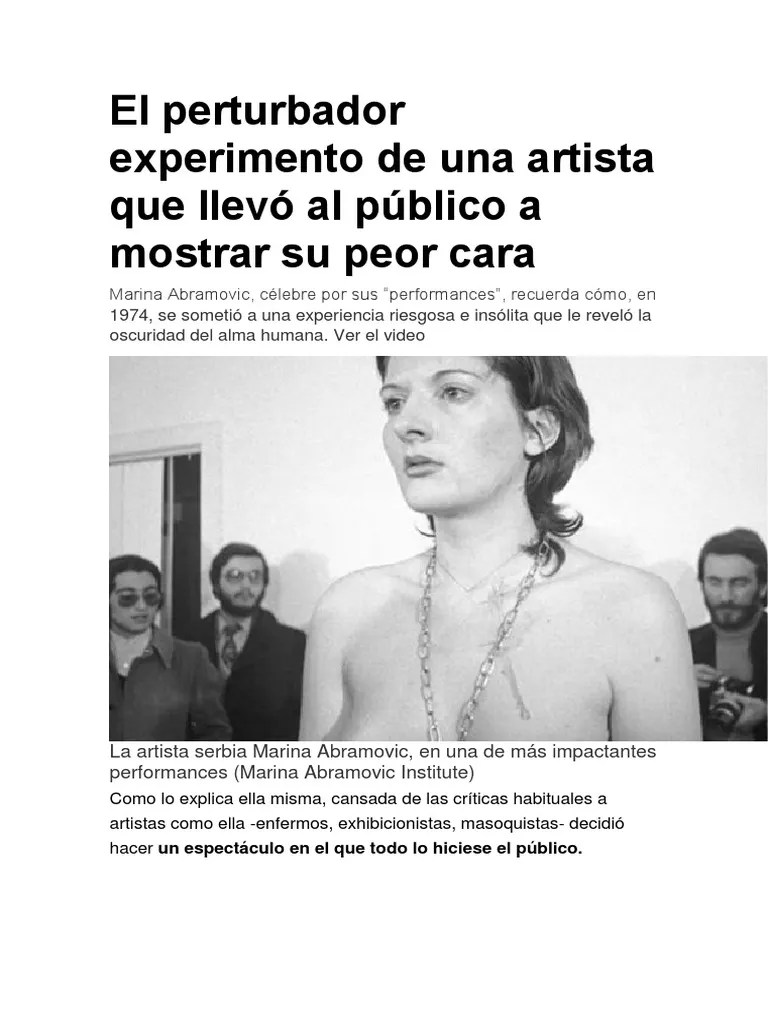 20.04.2017 · a artista marina abramovic liberou recentemente as imagens de uma das performances mais controversas de sua carreira. Der körper war sowohl ihr thema als auch ihr medium.. La artista fue humillada y deshumanizada por sus espectadores.